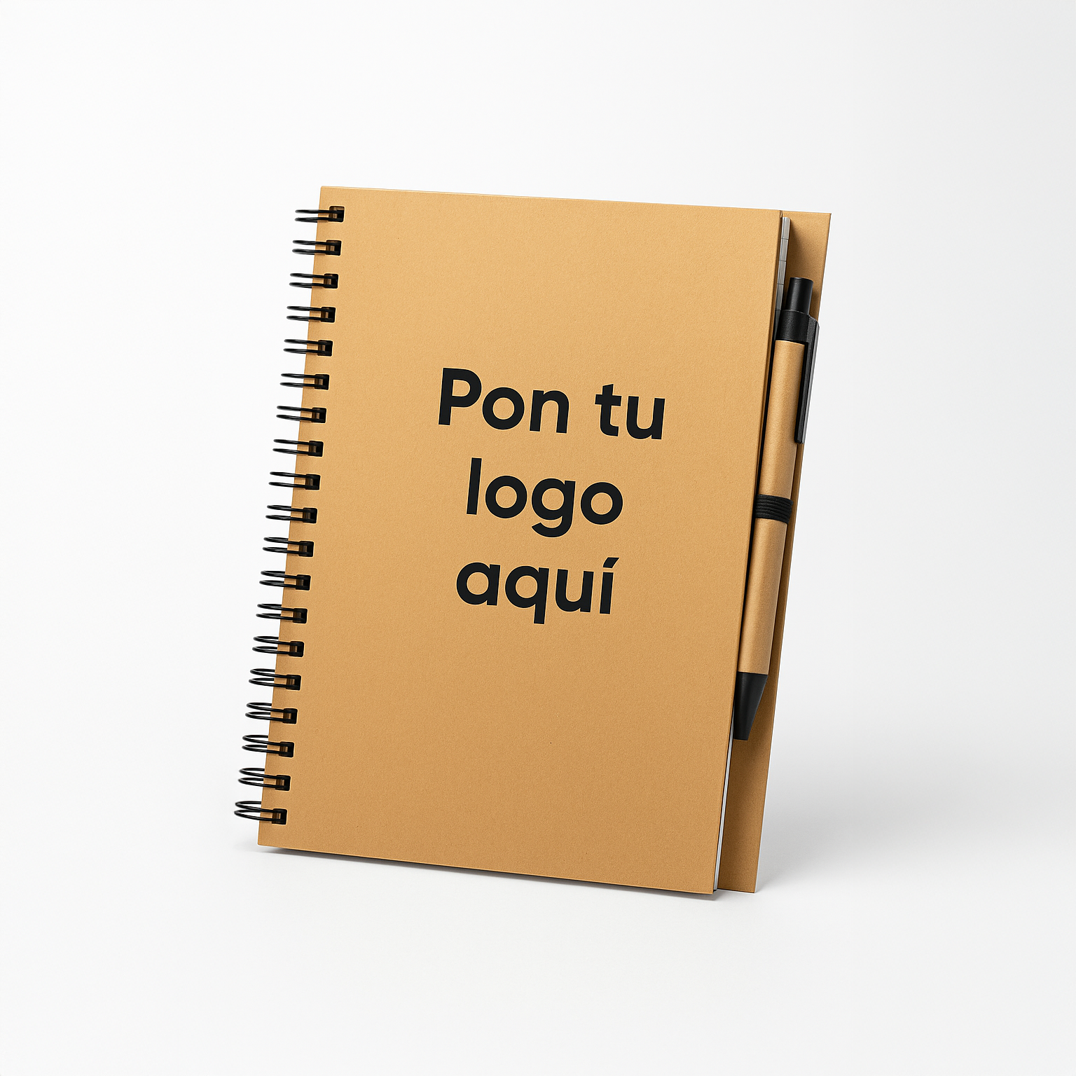 Esta libreta ecológica de cubierta color kraft es perfecta para empresas y marcas que apuestan por un enfoque sostenible. Fabricada con materiales reciclables y diseño minimalista, es ideal para tomar notas, planificar o regalar en ferias y eventos. Su estilo natural y profesional la convierte en una excelente opción para promocionar tu marca con responsabilidad ambiental.